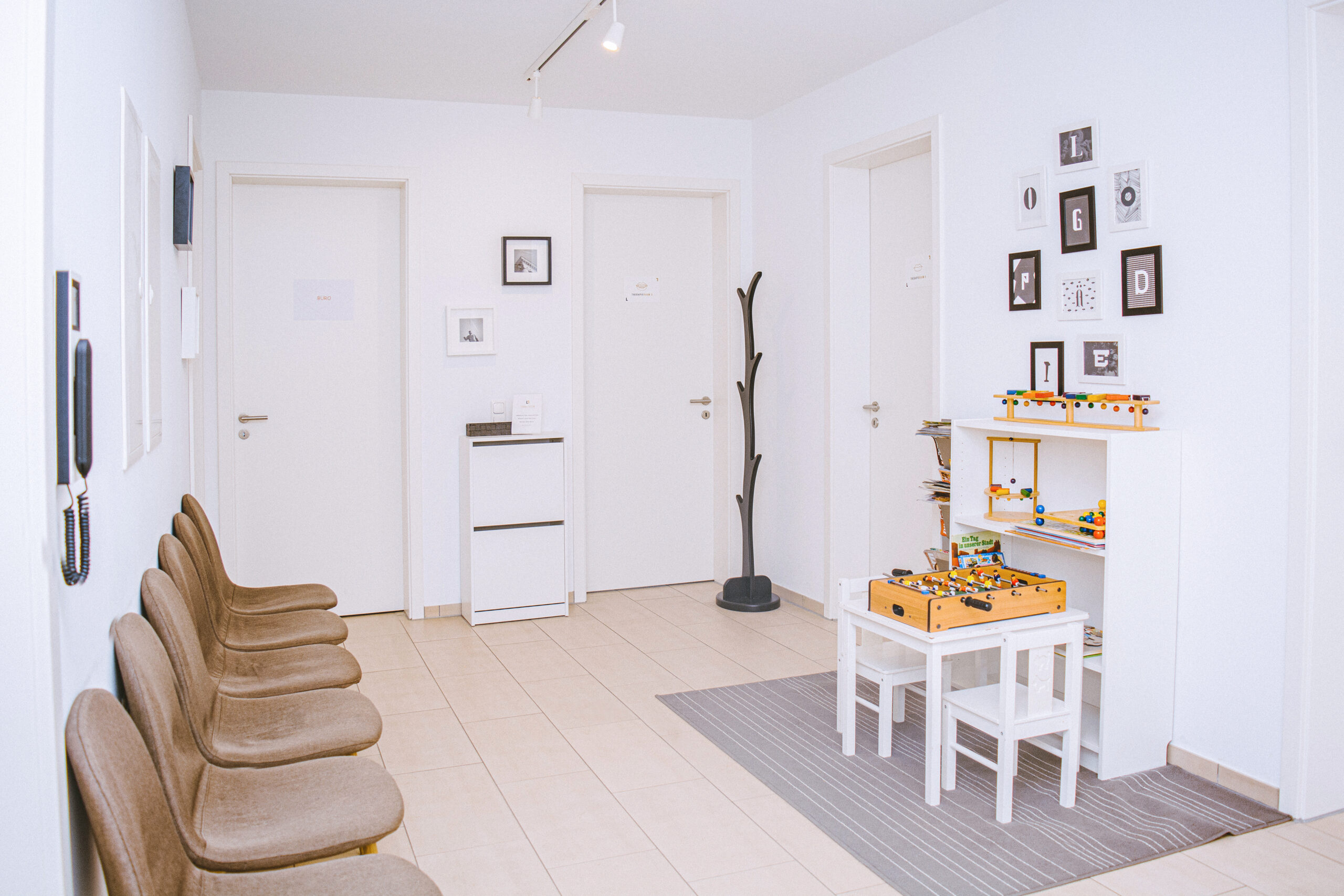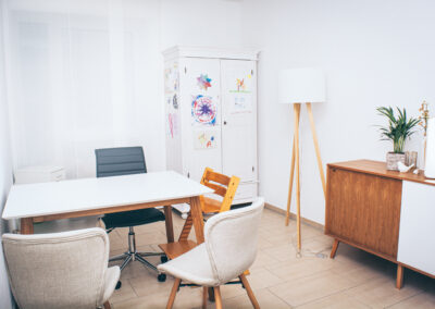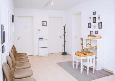 Unsere Praxisräume sind so gestaltet, dass sie allen Menschen offenstehen. Ebenerdige Eingänge, breite Türen und ein Aufzug sorgen dafür, dass Sie unsere Praxis ohne Hindernisse betreten und alle Therapieräume problemlos erreichen können. Wir legen großen Wert darauf, dass sich jede und jeder bei uns willkommen und gut aufgehoben fühlt, denn eine vertrauensvolle Umgebung ist die Basis für erfolgreiche Therapien.