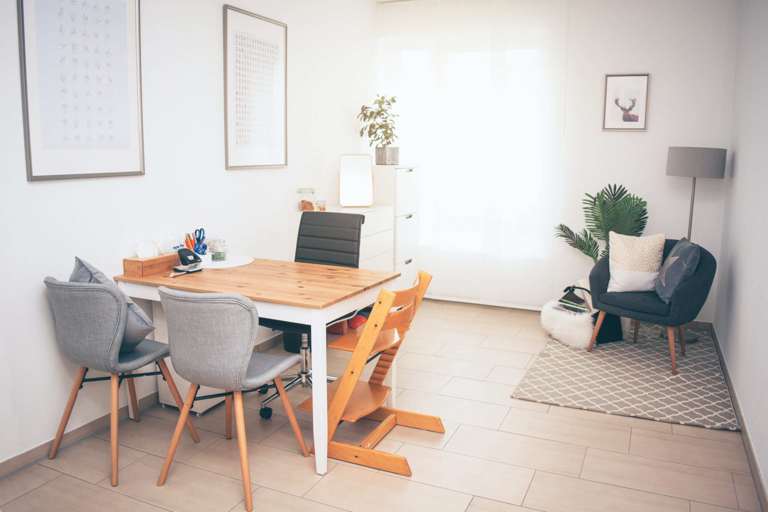Unser Standort in Wiesbaden-Südost überzeugt durch lichtdurchflutete Therapieräume im Erdgeschoss mit bodentiefen Fenstern, die eine helle, freundliche Atmosphäre schaffen. Eingebettet in eine grüne Umgebung mit Gärten in der Nähe, bietet unsere Praxis nicht nur moderne Ausstattung, sondern auch ein einladendes Ambiente.
